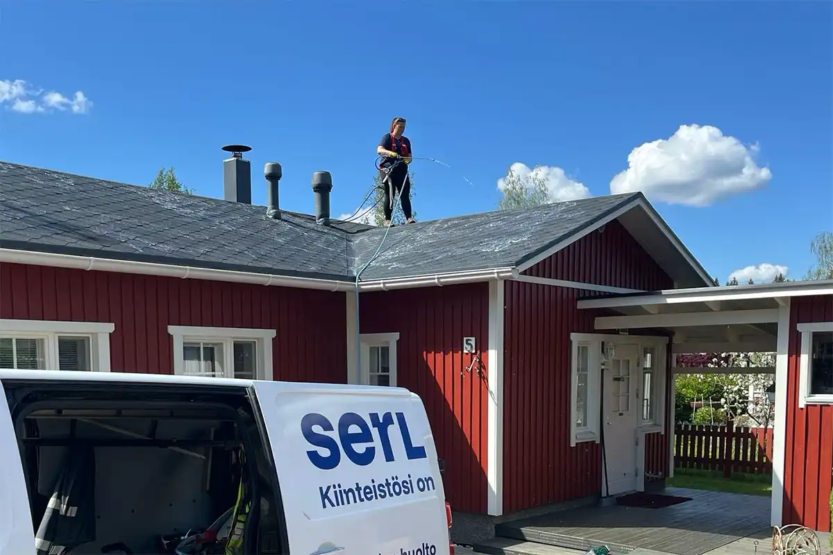 Yksittäisen omakotitalon katto voidaan pestä 1–2 päivässä.